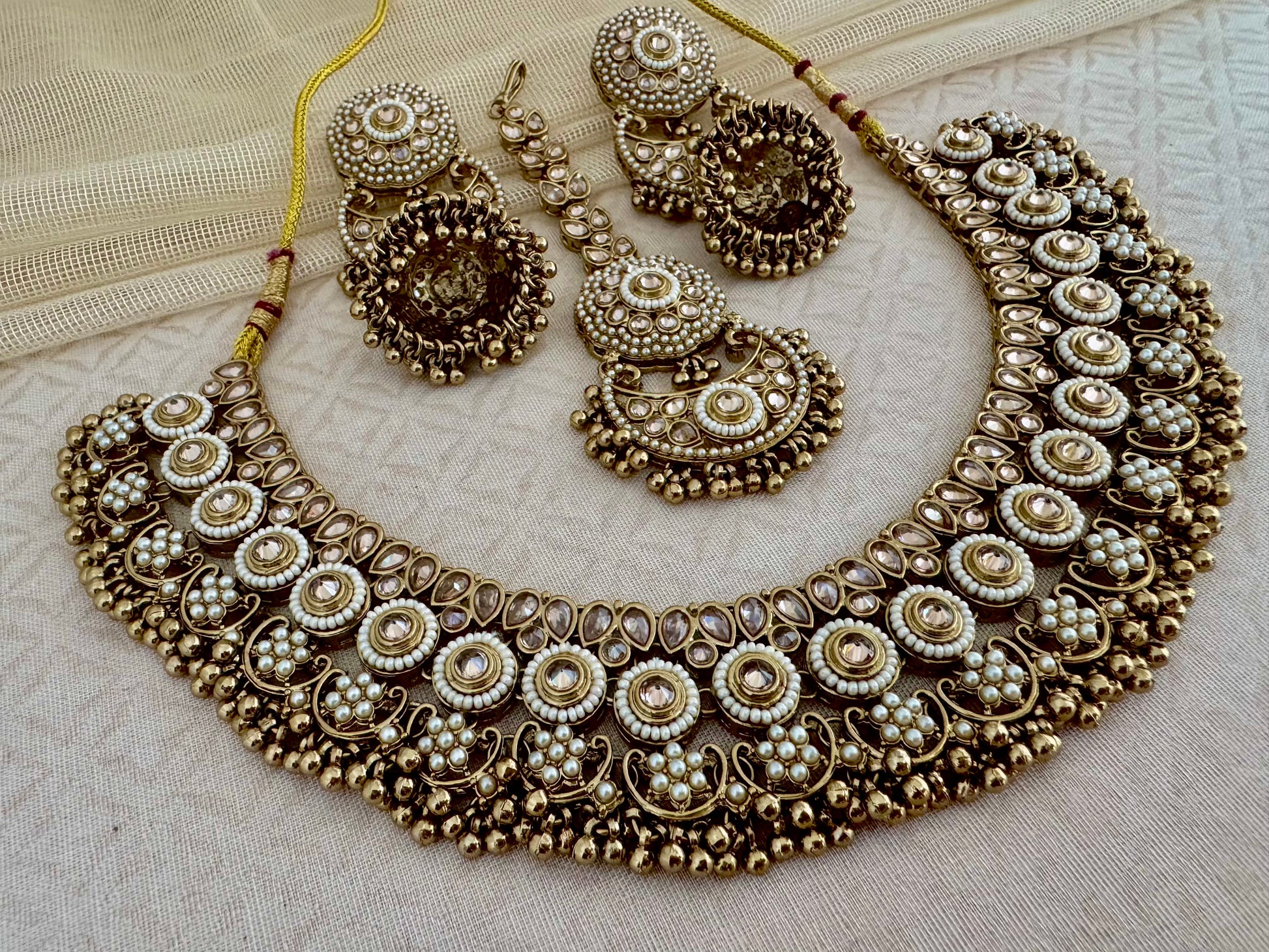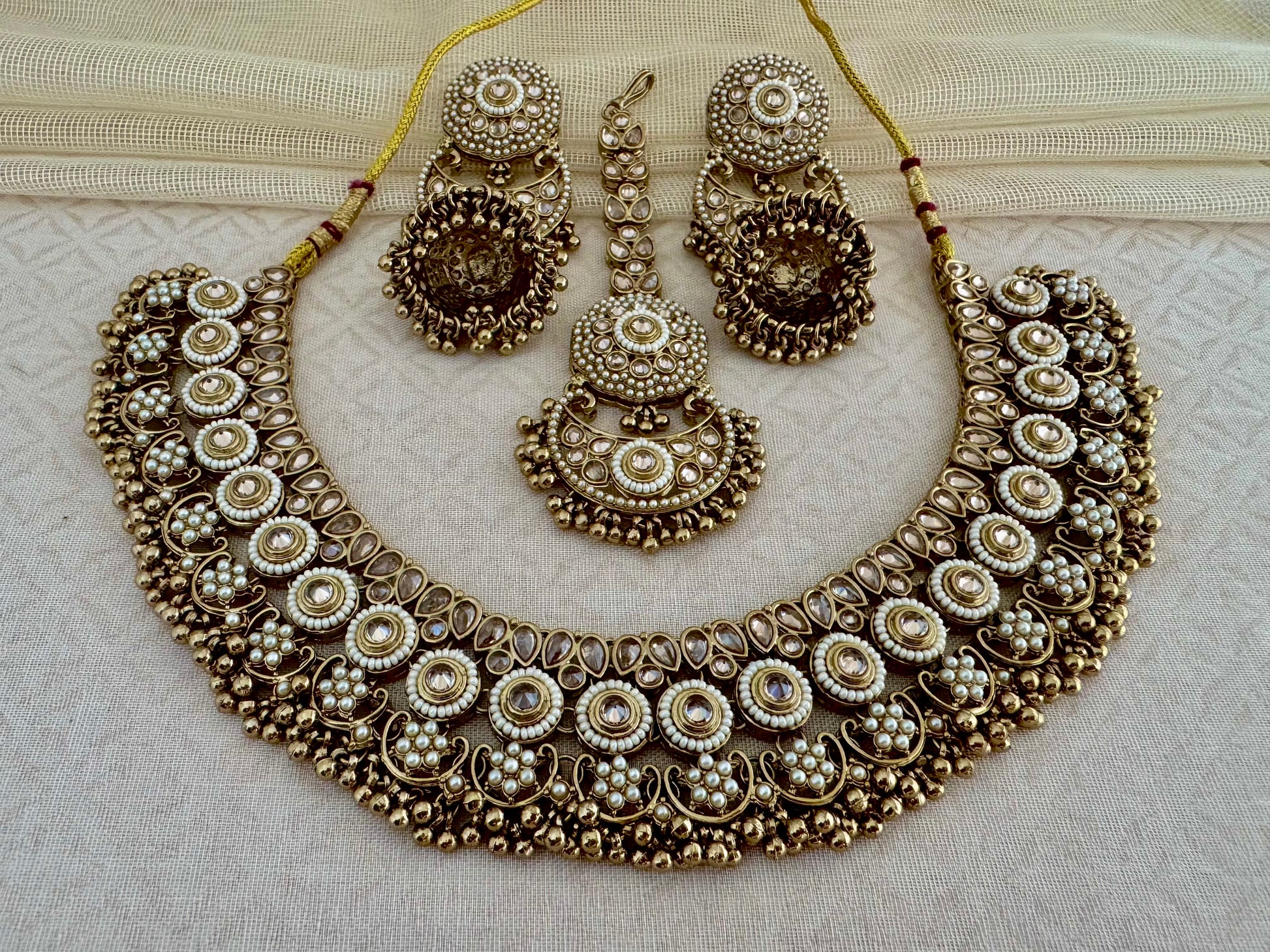 Arya necklace set is an eclectic spin to a traditional polki necklace set for. more modern appeal that adds a touch of contemporary elegance and artistic flair to any look.
