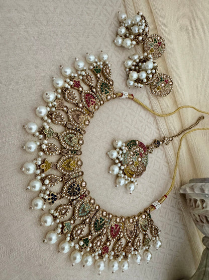 Lightweight yet striking, the handmade necklace set elevates even simple outfits with its artistic blend of shades. Ideal for casual gatherings or festive evenings.