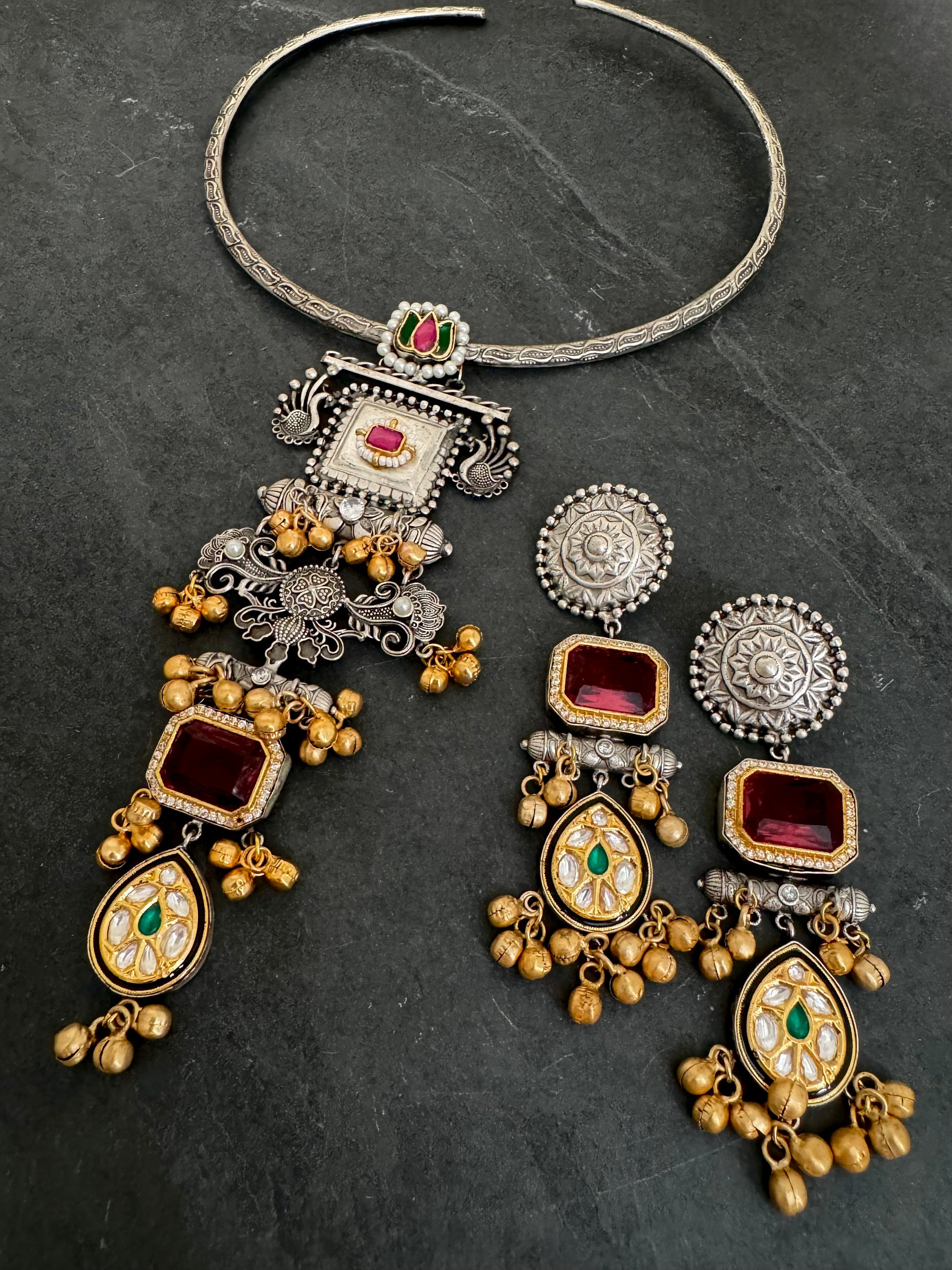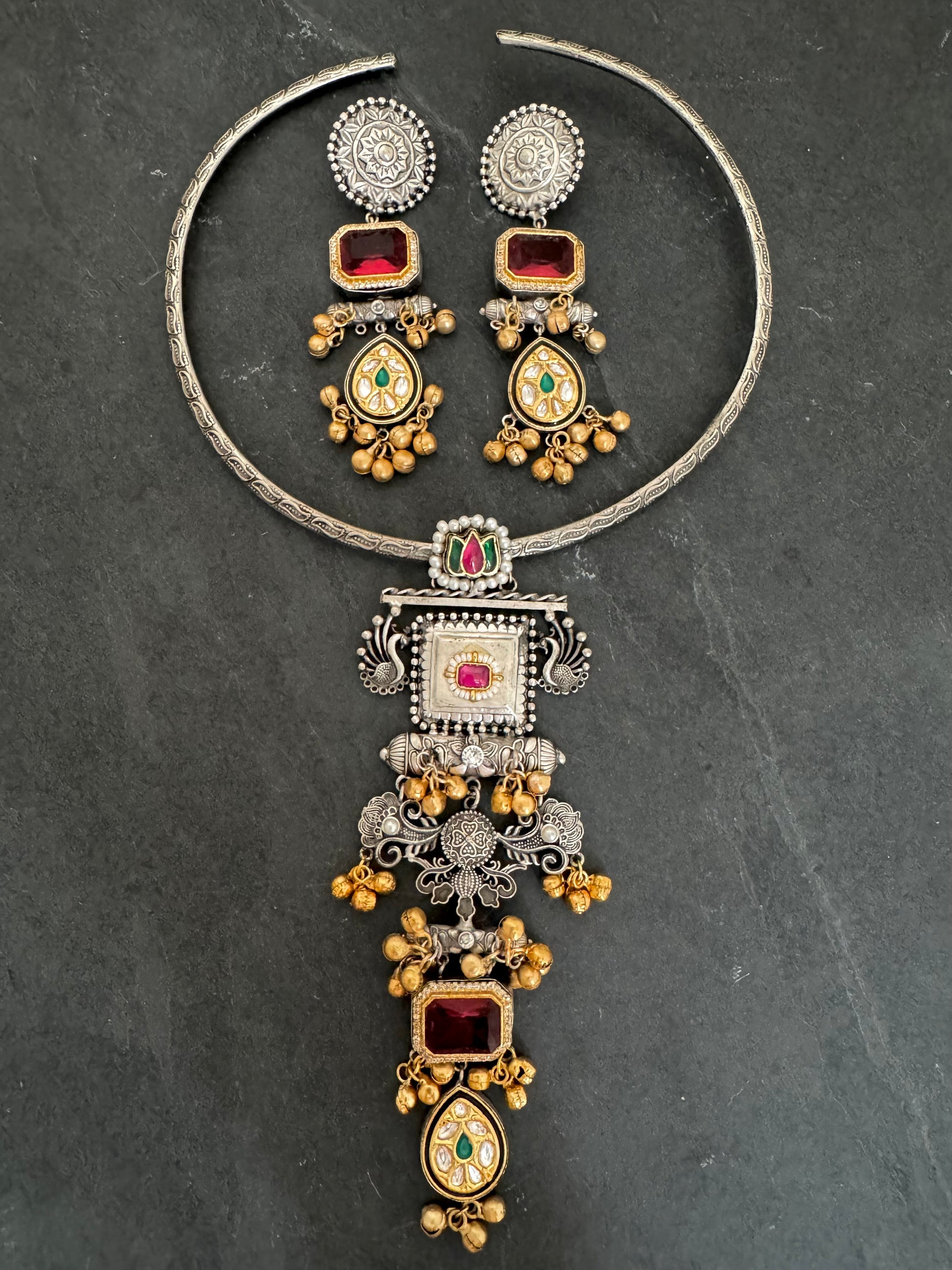 Set includes a Hasli necklace with pendant and long, dangling earrings