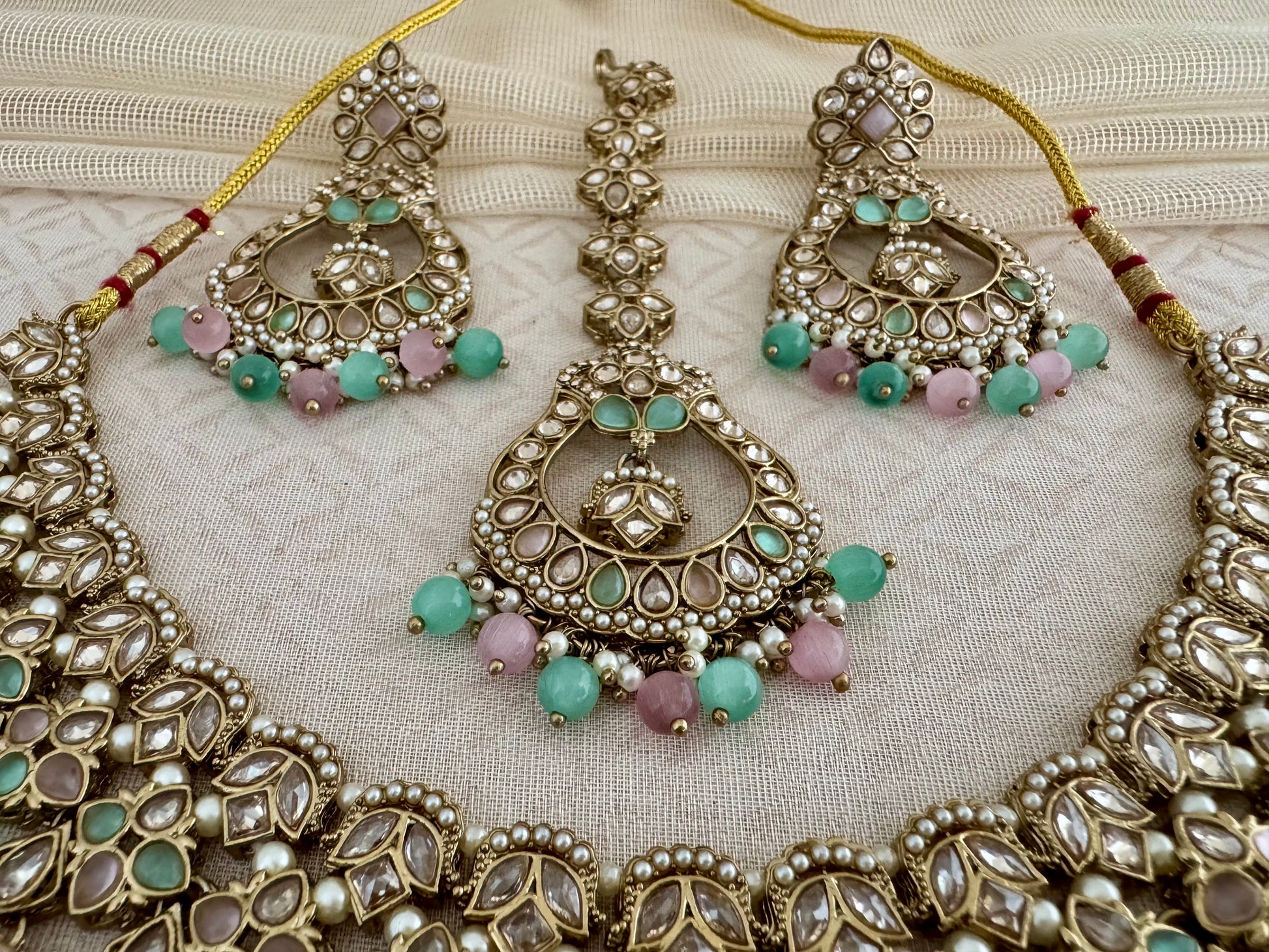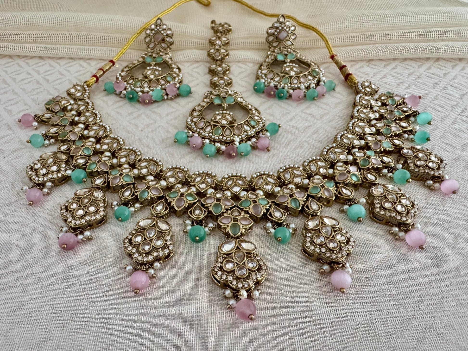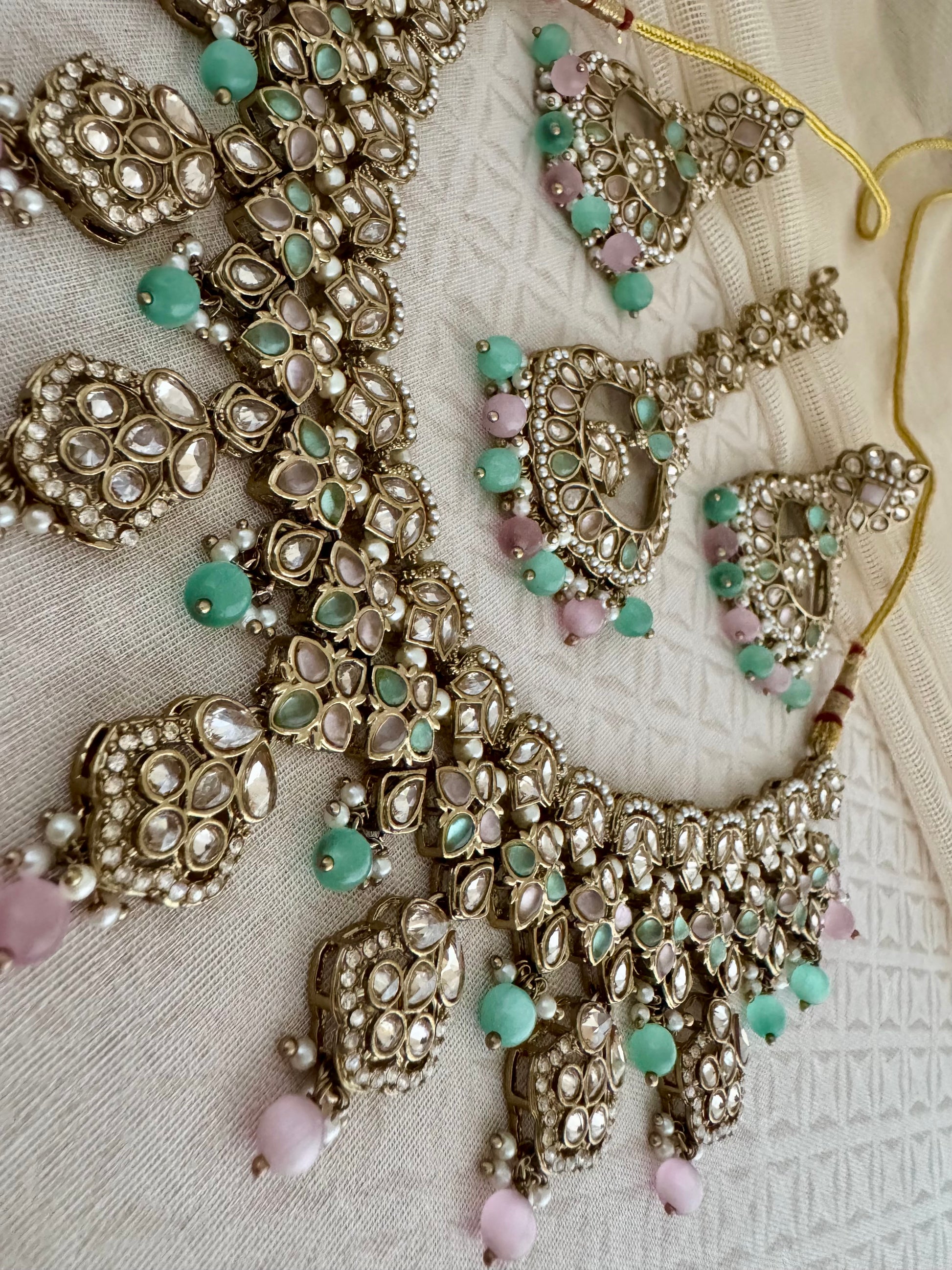 VEDA PASTEL PINK - GREEN NECKLACE SET